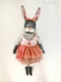 one of the artist's darling soft sculpture pieces -- created in a melange of hues, this is a soft sculpture by talented artist Jana Jordan of Not Just Rabbits... hand painted and hand stitched fabric, with found charms and tons of detail... comes with a wooden art tag and quilted case. Inimitable in her style, her textile art is well recognized and highly sought after among heirloom toy collectors and art toy aficionados... measures about 11" a one of a kind...REGULARLY $185 NOW AVAILABLE AT A PROMO PRICE (friends shown in any images are available separately)