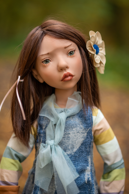 new for 2026-- A VERY Limited edition of 19 dolls worldwide -- She is 75cm/29.5" and created in the classic Zwergnase Puppen phthalate-free vinyl with a vinyl head, arms, legs and chest plate. Her body is Imitation suede body filled with polyester fibre, she has a human hair wig, glass eyes hand-blown in Lauscha, Real leather shoes, Hand-painted face, and a High-quality outfit -- with a hand knitted sweater. This art doll is designed by renown artist Nicole Marschollek-Menzner and made at the Zwergnase studio workshops in Germany. Signed hang tag and emblem branded box with branded couture ribbons... style #226701-75 -- arriving soon -- this is a PRE ORDER