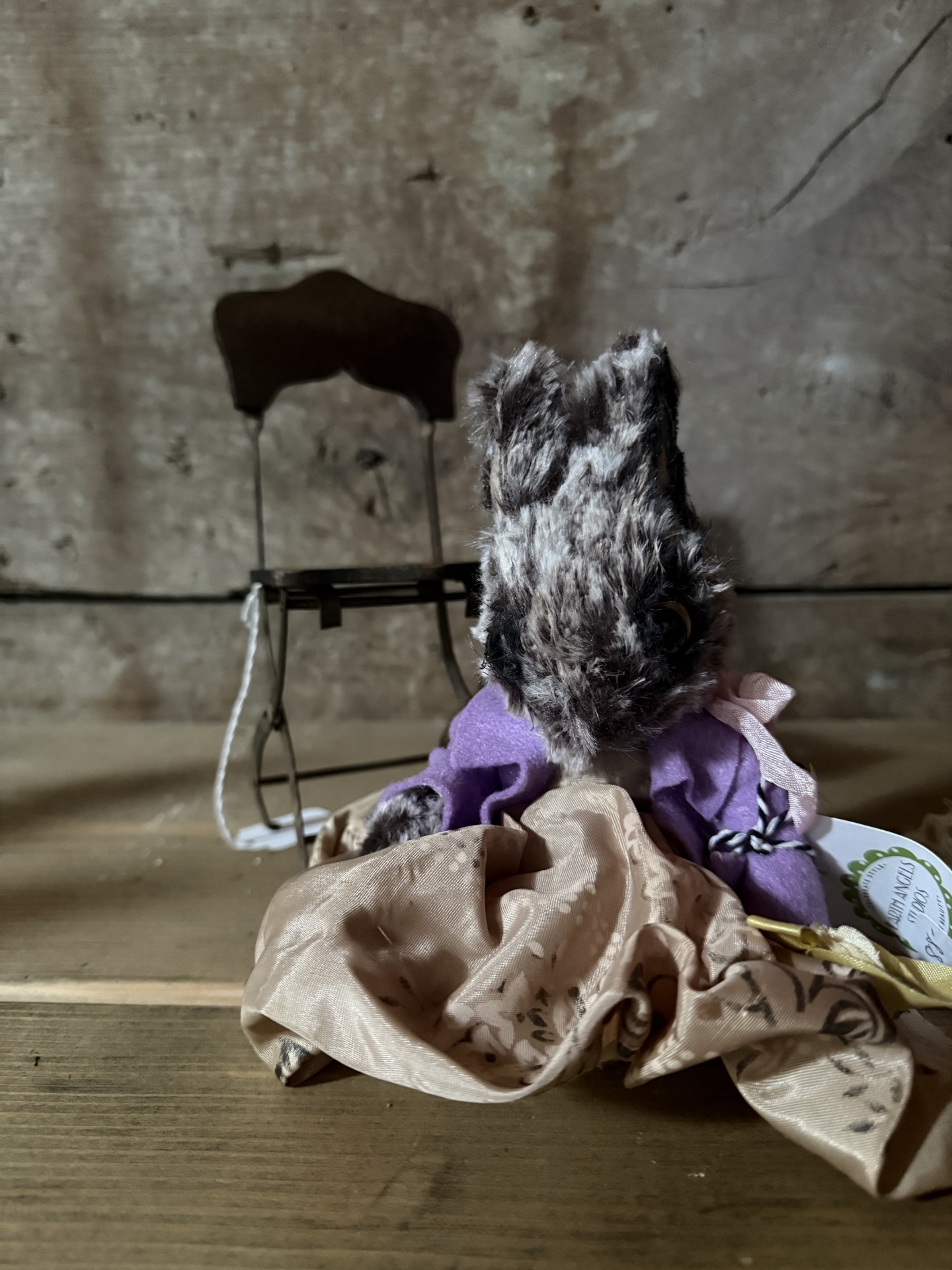 darling wee bunny is so sweet she is festooned with lacy layers and lovely lavender... an anthropomorphic creation available at Earth Angels Sutdios allery... exceptional, oddly sweet, and evocative of a special type of whimsy and imagination...a wonderful one of a kind...