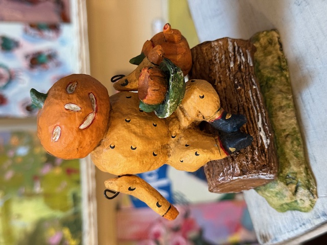 a charming piece with all of Debbee's most treasured elements -- anthroppmorphic fun and so many textures and seasonal joys -- this piece is one of Debbee Thibault's most exceptionally done and a very special creation and among the most sought after of her folk art pieces, long retired and quite rare -- about 5.5x5