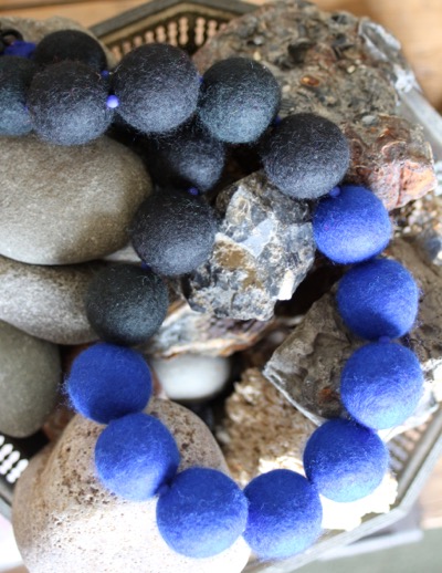Exceptional hand felted Scottish wool ball necklace created by artist created by artist Lynsey Walters in all the shades of the season beautiful done, measures 23” in length