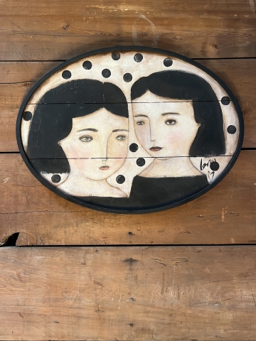 One of her most wondrous works, large in size and story, original mixed media painting on wood, measured 24x30, created by artist Laurie Meseroll.
