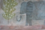 Original mixed-media painting by artist Deirdre Friebely, created with graphite, gouache and oil pastel on illustration board. Mounted on gallery wrap canvas, finished with the daily news and ephemera, sealed and preserved with varnish for a lustrous finish, measures 10x20.