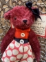 this one of a kind wearable art ted by Letty Worley is made from lush materials and found objects and trims. jointed mohair ted adorned with ephemera, and couture trims -- can be worn as a brooch, this piece also looks great clipped/pinned on everything from a lampshade to a boot, can also adorn a lapel or hat, a one of a kind, bear measures about 5" overall size about 8"