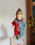 A wonderful vintage monkey in mohair and wool -- with a collar and toy whistle -- wee beanie hat too -- this fella is in wonderf vintage condition with some wear commensurate with age but lovely color and expression. He is a charmer, with fun and funky proportions.... just one in stock as shown...