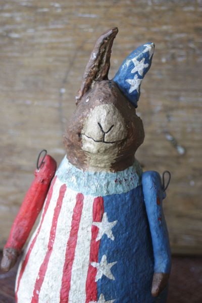 an original...a one of a kind folk art creation done in molded paper mache and hand-painted in Debbee Thibault's California studio... and such a rare find, a work of folk art showcasing the artist's inimitable style...about 6.5" tall... much like a the German candy container - shown with other original one of a kind creations available separately