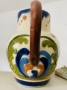 This piece is decorated with what is called the “Scandy” Pattern of fronts and flourishes with an almost fleur de lis appearance. The name references the designs reference to Scandinavian Rosmaling. Measures 7.5x7". Made in Devon England at the Torquay Potteries. Antique pottery sold as found, images show condition of piece... among the best examples I have seen, this grand piece showcases a duet of double scandies on front and back... impressed Watcombe base, circa 1900s, an excelent example.