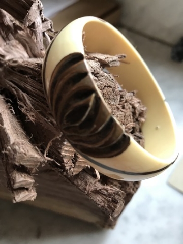 Vintage Carved Bakelite & Brass Bangle - SALE